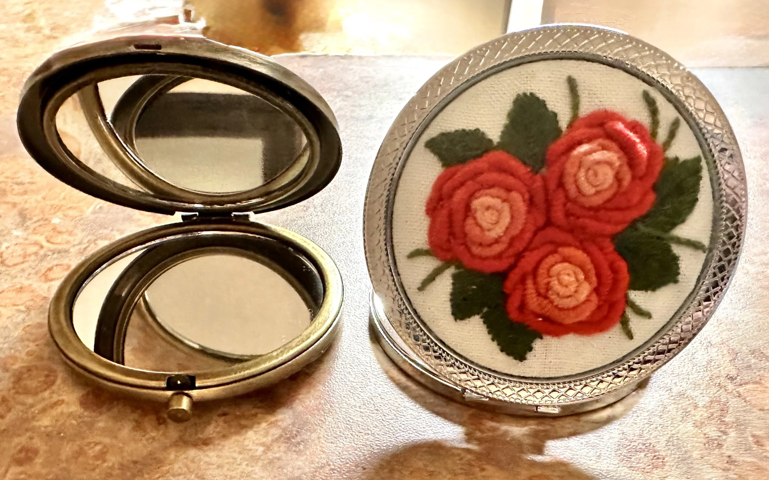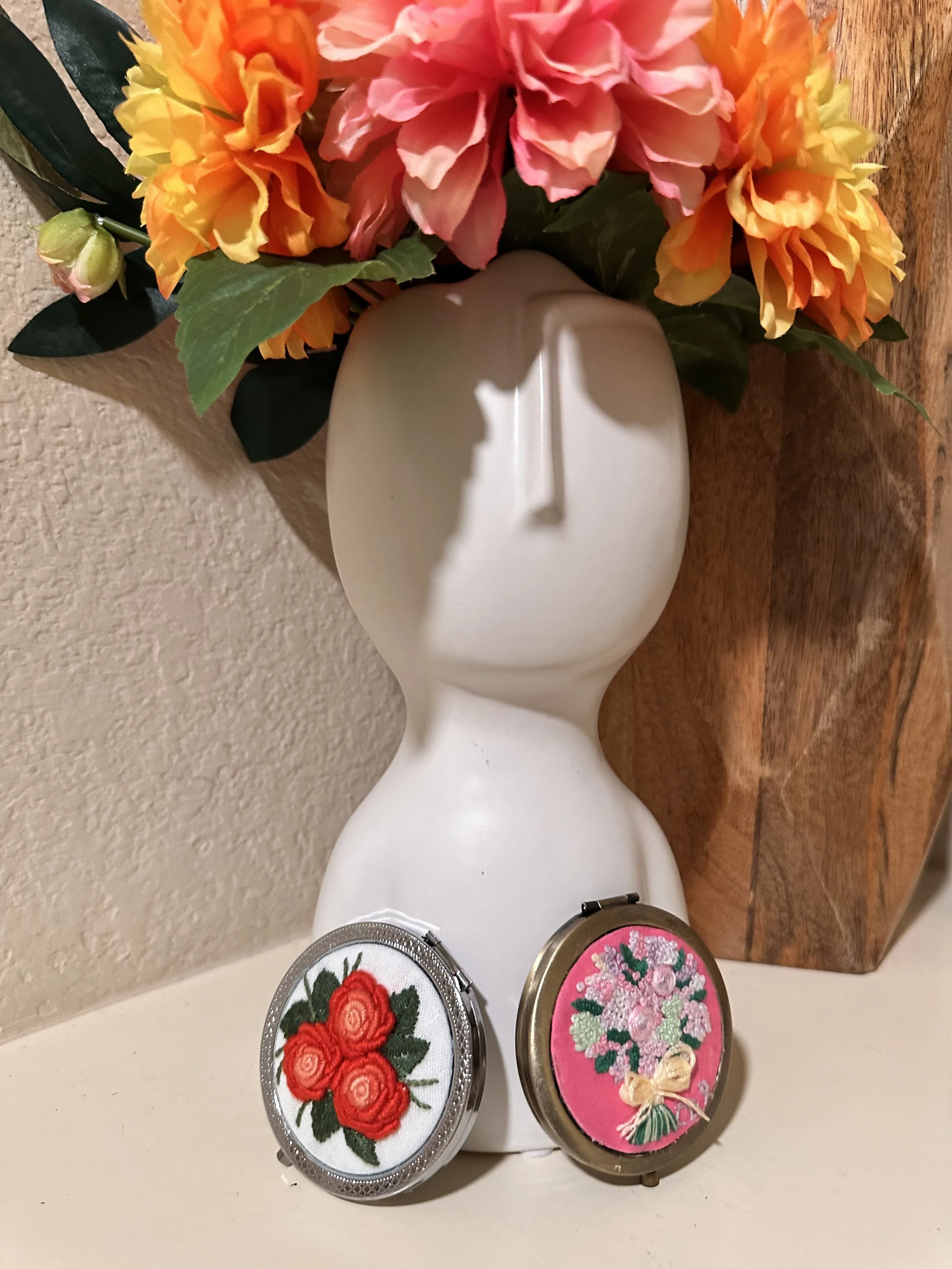 Please Note: Each compact is a one-of-a-kind, so colors and designs may vary slightly. We hope you enjoy the unique charm of your special piece!